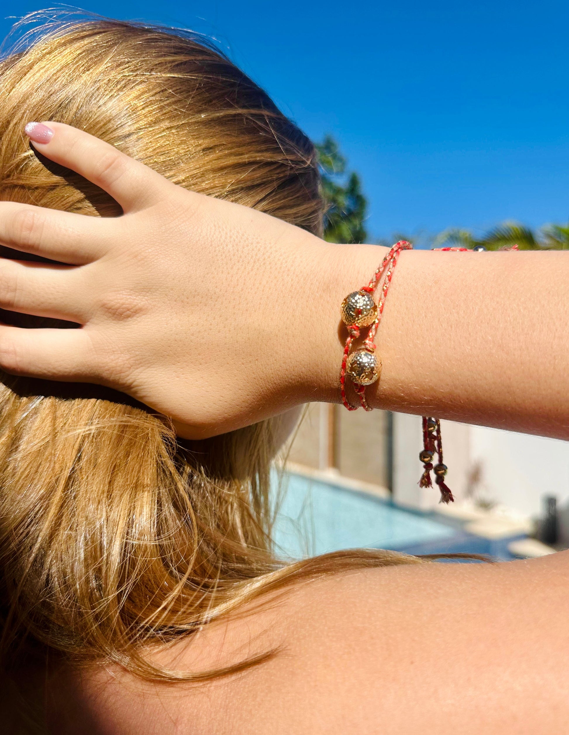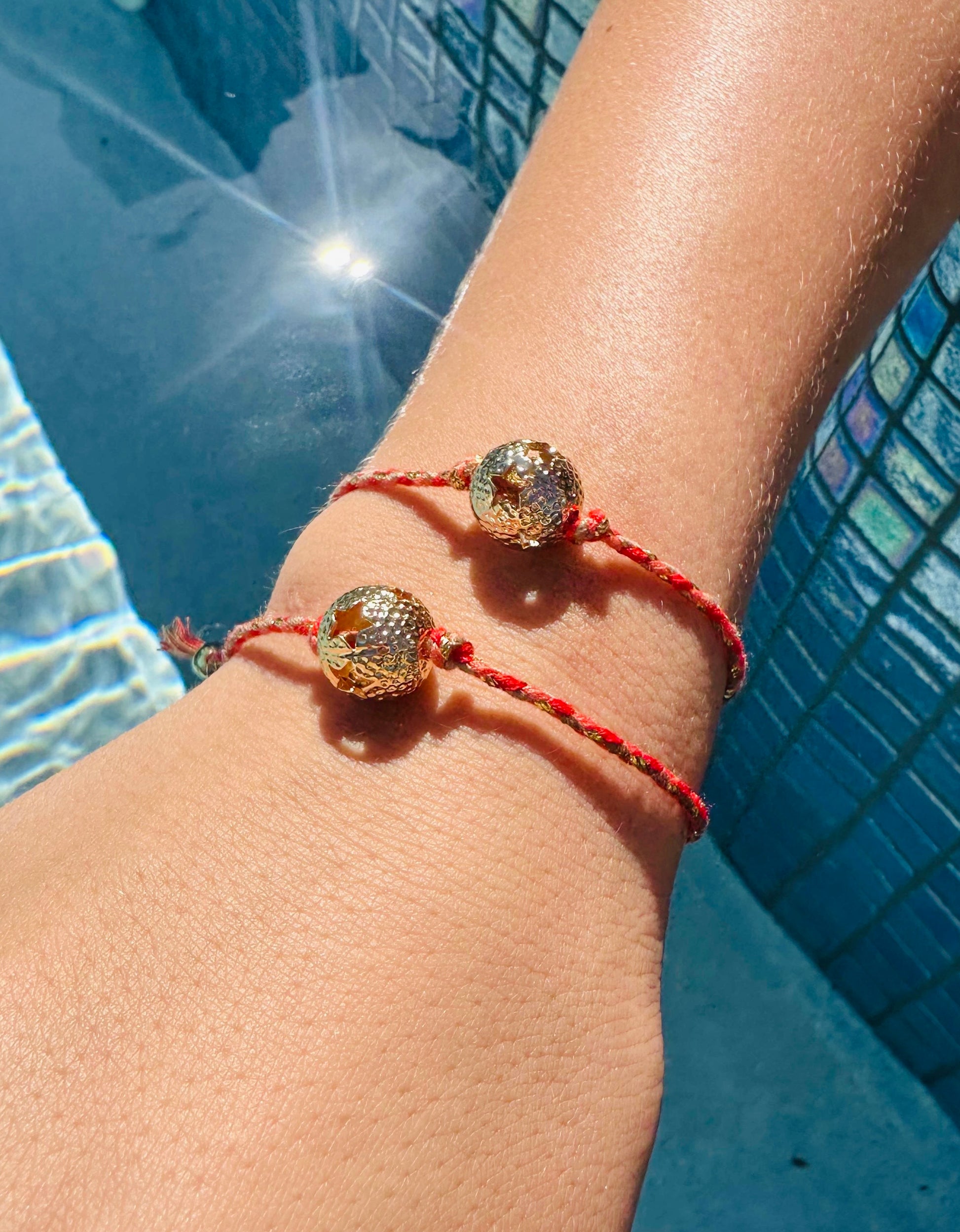 Golden Thread es una pulsera delicada creada como símbolo de intención, protección y luz. El hilo rojo representa fuerza, equilibrio y buena energía, mientras las esferas doradas aportan un brillo sutil inspirado en las estrellas y la calma del mar.