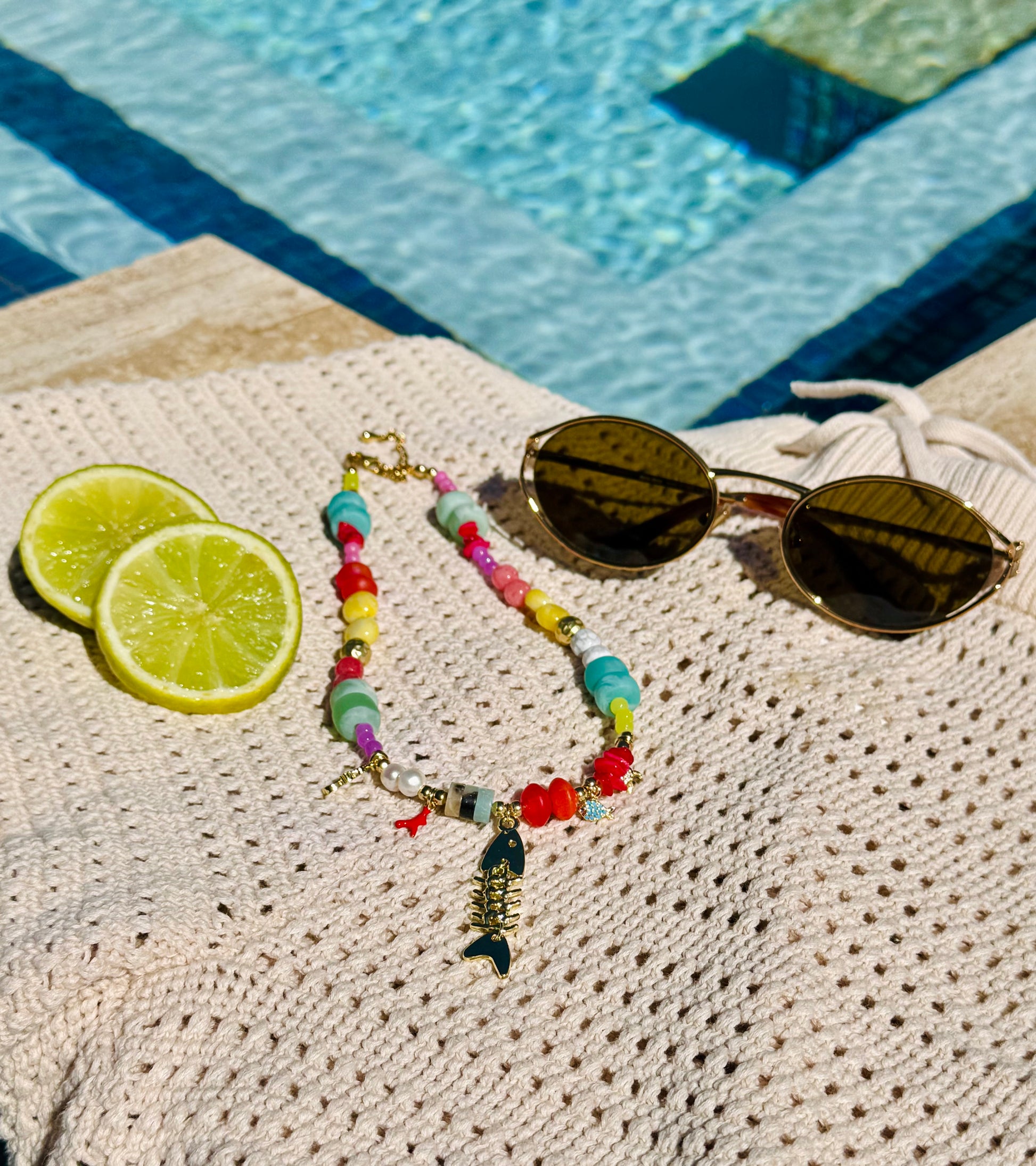 Inspirado en los colores vibrantes del mar y la alegría de la vida costera, Isla Coral es un collar que celebra el espíritu tropical. Sus cuentas multicolor evocan arrecifes llenos de vida, mientras el charm central en forma de espina de pez aporta un toque divertido, único y con esencia marina.